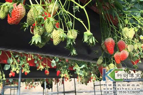 本案例為高架草莓無土栽培模式,包括最新的水肥一體化技術(shù)(帶自動檢測功能),能夠精準(zhǔn)控制草莓所需水肥的施用量,在草莓生長每個階段精準(zhǔn)施肥施水,達(dá)到提高產(chǎn)量和品質(zhì)的目的。傳統(tǒng)的草莓種在地上,不僅彎腰勞作工作強(qiáng)度大,而且難以避免病蟲害的侵?jǐn)_。高架草莓種植的突出優(yōu)勢是讓植物有較好的采光條件,以及能夠有效控制植物根部的溫濕度,給瓜果蔬菜創(chuàng)造最好的生長條件。
