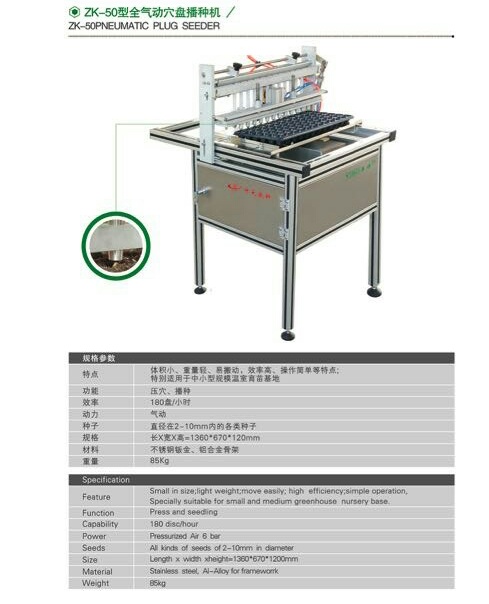 此款播種單機適合南瓜、辣椒、茄子、西紅柿、西藍花、上海青、萵苣等各種蔬菜種子的播種,播種精準率達到98%以上,播種效率高,適合中小型育苗場,可大大降低人工成本,提高生產效率。