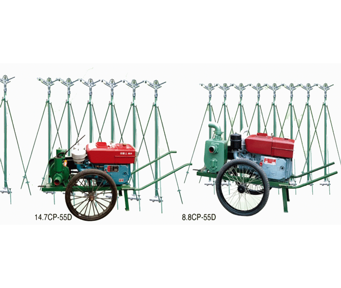 CP型移管式噴灌機:自吸泵,機架,PY系列噴頭,進水管,涂塑軟管等配件組成。